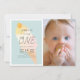 This cute gender neutral/boy's 1st birthday photo invitation card features an ice cream on a light blue background framed by a white border. The reverse side features a white background with light blue stripes. Personalise it for your needs. You can find more polar bear products at my store.