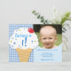 Cute boyish colours and a big scoop of ice cream with sprinkles and a cherry on top. Great for your little guy's special day.