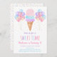 This cute invitation features an ice cream cone and balloons in pastel rainbow colours with faux gold foil confetti.