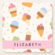 Ice Cream Pattern, Ice Cream Cone, Your Name Square Paper Coaster