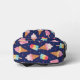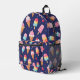 Pattern on blue background with creamy ice cream and popsicles, cherries and confetti floating around. Cute whimsical food design.