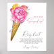 This ice cream-themed bridal shower is decorated with watercolor florals and an ice cream cone. The text says "She's been scooped up!" in stylish pink script typography. Watercolor ice cream with flowers and fruits.