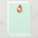 Stationery illustrated with a bowl of ice cream with 3 delicious scoops covered in candy sprinkles. An ice cream cone also with 3 scoops of chocolate, vanilla and strawberry. A dessert bowl filled with neopolitan flavoued ice cream with a delicious cherry on top. A green and white stripes pattern in the background.
