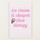 NewParkLane - Planner with qfunny summer quote: 'Ice cream is cheaper than therapy' in a fun hot pink script typography, with a small ice cream cone, against a blush pink and white striped background.