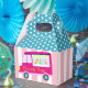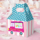 Ice Cream Truck party favour box with teal blue polka dot top and pink stripes bottom. This favour box is so sweet and great to use for so many different occasions. You can easily edit the text to suit your event.