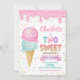 Ice Cream Two Sweet 2nd Birthday Party Pink Mint Invitation