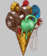 Surrealistic drawing of melted dumbbells, a kettlebell, a jump rope and a gym mat in an ice cream cone. Good design for summer and workout. Your fitness coach will love it!