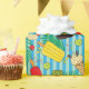 Summer themed wrapping paper patterned with ice creams, lollies, popsicles and fruit over tropical palm leaves and stripes