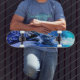 Dd brand skateboard, with blue graphics of an ice dragon. Customise this board to add your own text.
