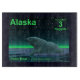 Another in the series of postage stamps for an independent Alaska. A peaceful moment in the long Arctic night. A Polar Bear rests at the edge of an open area in the pack ice.The Northern Lights glow in the distance; bright stars twinkle overhead. Polar bears are endangered. How much longer will scenes like this be able to occur? Please help save Polar Bears from extinction.