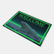 A peaceful moment in the long Arctic night. A Polar Bear rests at the edge of an open area in the pack ice. The Northern Lights glow in the distance; bright stars twinkle overhead. Text reading, "WELCOME" also appears. Polar bears are endangered. How much longer will scenes like this be able to occur? Please help save Polar Bears from extinction.