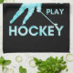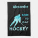 Design: "Born to play hockey" + silhouette of a hockey player + personalize with the name of the skater.