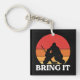 Hockey theme keychain with silhouette hockey goalie and text that reads Bring It!
