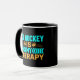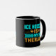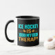 Hockey theme mug with hockey pucks and text that reads Ice Hockey is My Therapy!