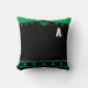 Easy to edit ice hockey or lacrosse custom jersey design throw pillow. Green accents, and the background colour can be changed, just click 'CUSTOMIZE'. Just use the boxes to the right of the image to insert your own choice of name and number. You can also add either a captains 'C' or alternate 'A' or the sweater number on the front too.