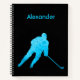 Turquoise personalised hockey notebook with hockey player - a useful ice hockey gift to take notes after practice or create a journal.