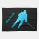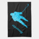 Turquoise personalised hockey skate towel with hockey player - a useful ice hockey gift considering it is essential to dry out the blades after practice.
