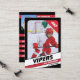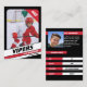 Parents of little league ice hockey players can proudly share their kids' achievements on the field with these customisable red and black trading cards. Both photos, front and back, can be altered to showcase your own little leaguer, including a changeable Jersey Number. Nearly all text on the back can be modified, including player stats, bio, position. Providing plenty to distribute among friends and relatives, as well as for your child to trade them with other kids who also have collectable trading cards of themselves. It creates a distinctive ice hockey card collection, making for unique gifts.