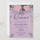Elegant and trendy design with fancy script typography. All text is adjustable and easy to change for your own party needs. Great elegant Quinceañera design. Available in different colours. Ice pink faded overlay rose design with tiny butterfly. Textured background. Mis Quince custom party invitation. Keep the style or rearrange to create your own! 15th birthday party