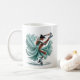 This ceramic coffee mug is shown with a sports ice skater art print.