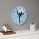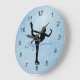 Ice Skater Design Wall Clock featuring the a pair of white ice skates against a blue ice graphic background, with customisable text.