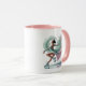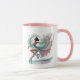 This ceramic coffee mug is shown with a sports ice skater art print.