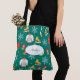 Add a festive custom touch to your holiday shopping trip with this fun teal Christmas pattern with ice skates, sweaters, snowflakes, and mittens. Add your family monogram initial for a personalised touch!