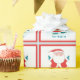 Ice skating holiday gift wrap featuring Santa Claus skater. Edit text to easily personalise.