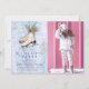This retro and elegant "ice skating party" birthday photo invitation features a light blue frozen snow background with a pair of ice skates and faux silver snowflakes. The reverse side features a blue background with white snow patterns. Personalise for your needs. You can find more matching products at my store.