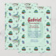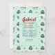 A background of ski hats, ice skates and snow flakes is overlaid with a semi-transparent panel that holds your party information. A sporty, winter-theme invitation for boys and girls.