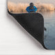 Mousepad with an athlete ice skating on a frozen river past hoar-frosted reeds and a windmill on a beautiful winter morning in the Netherlands.