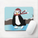 An adorable plaid scarf wearing penguin enjoys a winter day with some ice skating on a mouse pad