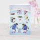 Slide into the festive season with this cute Christmas card featuring penguins ice skating on a frozen rink. Emperor penguins with their fluffy chick, rockhoppers, gentoos and Adelie penguins have all come out to play 🐧