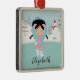 Dated & personalised cute black hair skater ice skating Christmas Ornament set on a snow filled background with trees & a snowman. A Wonder Christmas gift sure to be treasured for many years to come.
