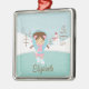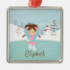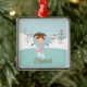 Dated & personalised cute brunette skater ice skating Christmas Ornament set on a snow filled background with trees & a snowman. A Wonder Christmas gift sure to be treasured for many years to come.