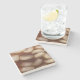 The coasters are gorgeous, a quality feel and heavy weight. They look like a precious archeological find. A rustic stone juxtaposed with a modern floral black and white print. I like the way the print goes slightly imperfect on the cut stone edges giving them a kind-of natural beauty.