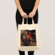 The printing came out very well, better than I had anticipated. The natural color fabric is sturdy with strong seams and comfortable handles. This tote fits easily over my shoulder. As it is filled, the bottom flattens out--very cool! I would buy this product again. This grocery tote holds a lot of groceries! The image quality was very good. The colors were a little darker than I had expected. The darkness may have been due to printing on a natural color fabric rather than on white. The cat design is attractively centered on the tote. The spirit of the design is very lively, just as it appears on the Zazzle website.