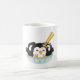 This design is an illustration of three anime penguin dumplings in a pretty flower covered bowl with chopsticks grabbing one of the dumplings.