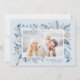 This simple and elegant nature-inspired holiday card features your favourite horizontal or landscape-orientated photo adorned at the corners with sprigs of graceful icy blue watercolor foliage. "Merry" appears at the top left in chic handwritten script, with your names and the year at the bottom right. An elegant botanical design for your Christmas 2021 greetings.