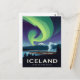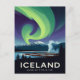 Capture the magic of the Aurora Borealis (Northern Lights) dancing over the dramatic landscape of Iceland, the Land of Fire and Ice. This postcard features a classic, vintage travel poster design with geothermal steam and snowy mountains. It's perfect for celebrating a trip to the Nordic country, sending a unique greeting, or collecting as an art print. Ideal for nature lovers, adventurers, and anyone fascinated by the Arctic and its stunning phenomena.