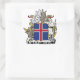 The coat of arms of Iceland displays a silver-edged, red cross on blue shield. This alludes to the design of the Icelandic flag. The supporters are the four protectors of Iceland (landvættir) standing on a pahoehoe lava block.[citation needed] The bull (Griðungur) is the protector of southwestern Iceland, the eagle or griffin (Gammur) protects northwestern Iceland, the dragon (Dreki) the northeastern part and the Rock-giant (Bergrisi) is the protector of southeastern Iceland.