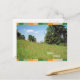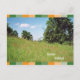Ich bin Postkarten, Sommer in Farbe. Die Karte Ich bin fröhlich zeigt eine Sommerwiese mit blauem Himmel und Bäumen im Hintergrund.