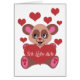 This adorable teddy bear peeks from behind a big red heart with Ich Liebe dich written on it. Give this card to your German speaking Valentine any time of the year! Exclusive to our shop.