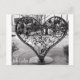 Black and white picture of wrought iron heart shaped sculpture and a matching message of love