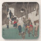 Fuchu from the “Reisho” Tokaido. So-called because of the titles written in formal script. The best Tokaido set after the Hoeido. Shows travellers coming and going at the entrance to the licensed quarter of Fuchu, the old capital of Suruga Province, becoming Shizuoka City in 1868. Published by Marusei c. 1851-2. One of the five best designs from the set.