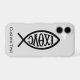 Ichthys or Ichtus Christian symbol. Fish outline with greek letters "ΙΧΘΥΣ". Custom background color. Custom text.