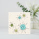 This customisable Iconic Atomic Starbursts Invitation pattern features iconic atomic starbursts. That’s right! The old school, cream coloured background with gold speckles is the perfect backdrop for the vibrant turquoise, soothing celery, and kitschy pear green coloured circles. The spots of colour are sporadically placed in various sizes with overlaying black V shaped lines to form the mod sputnik starbursts. Styled after a 1950’s dish pattern, this retro inspired design has everything you need to be truly mid century modern. Personalise the opposite side with your party specifics.