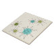 This Iconic Atomic Starbursts Large Ceramic Tile pattern features iconic atomic starbursts. That’s right! The old school, cream coloured background with gold speckles is the perfect backdrop for the vibrant turquoise, soothing celery, and kitschy pear green coloured circles. The spots of colour are sporadically placed in various sizes with overlaying black V shaped lines to form the mod sputnik starbursts. Styled after a 1950’s dish pattern, this retro inspired design has everything you need to be truly mid century modern.