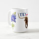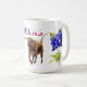 Unique mug design featuring the Bluebonnet flowers of Texas and a Texas Longhorn. The Bluebonnet flower is the state flower of Texas. In March and April, these beautiful flowers bloom in fields and freeway medians.