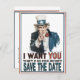 Uncle Sam means business and he's pointing at you to save the date for a 4th of July event. Great theme for military functions and patriotic events. Copy of original vintage I Want You Uncle Sam United States war poster.